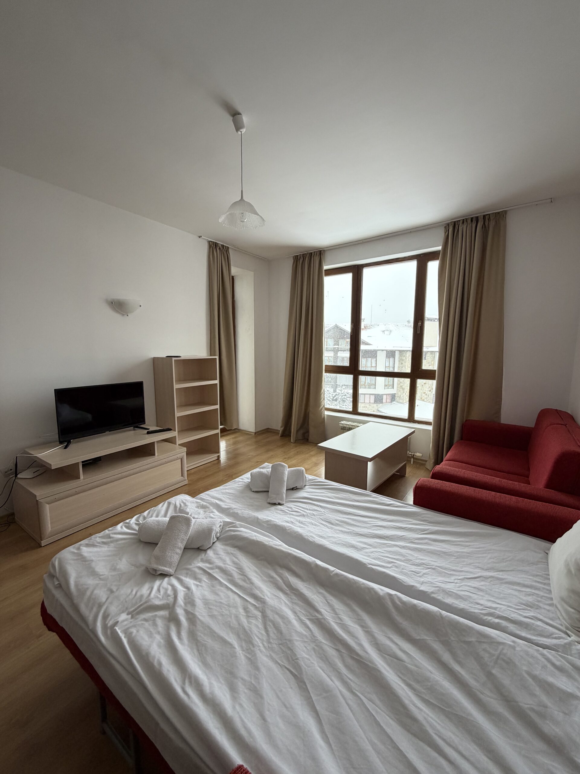 Semiramida Gardens apartment complex is newly built and modern complex situated high in the mountain, about 4km up from the center of Borovets resort. the complex is part of Borovets Hills Hotel. The complex offers private studios, one-bedroom and two-bedroom apartments with fully equipped kitchen areas. There are indoor swimming-pool, sauna, lobby bar and free parking available. Underground paid parking is also available. Modern SPA center available in the complex. Bedding and towels provided. Fresh towels are provided mid-week. Daily light cleaning (empting the bins and supply of toilet paper incl)