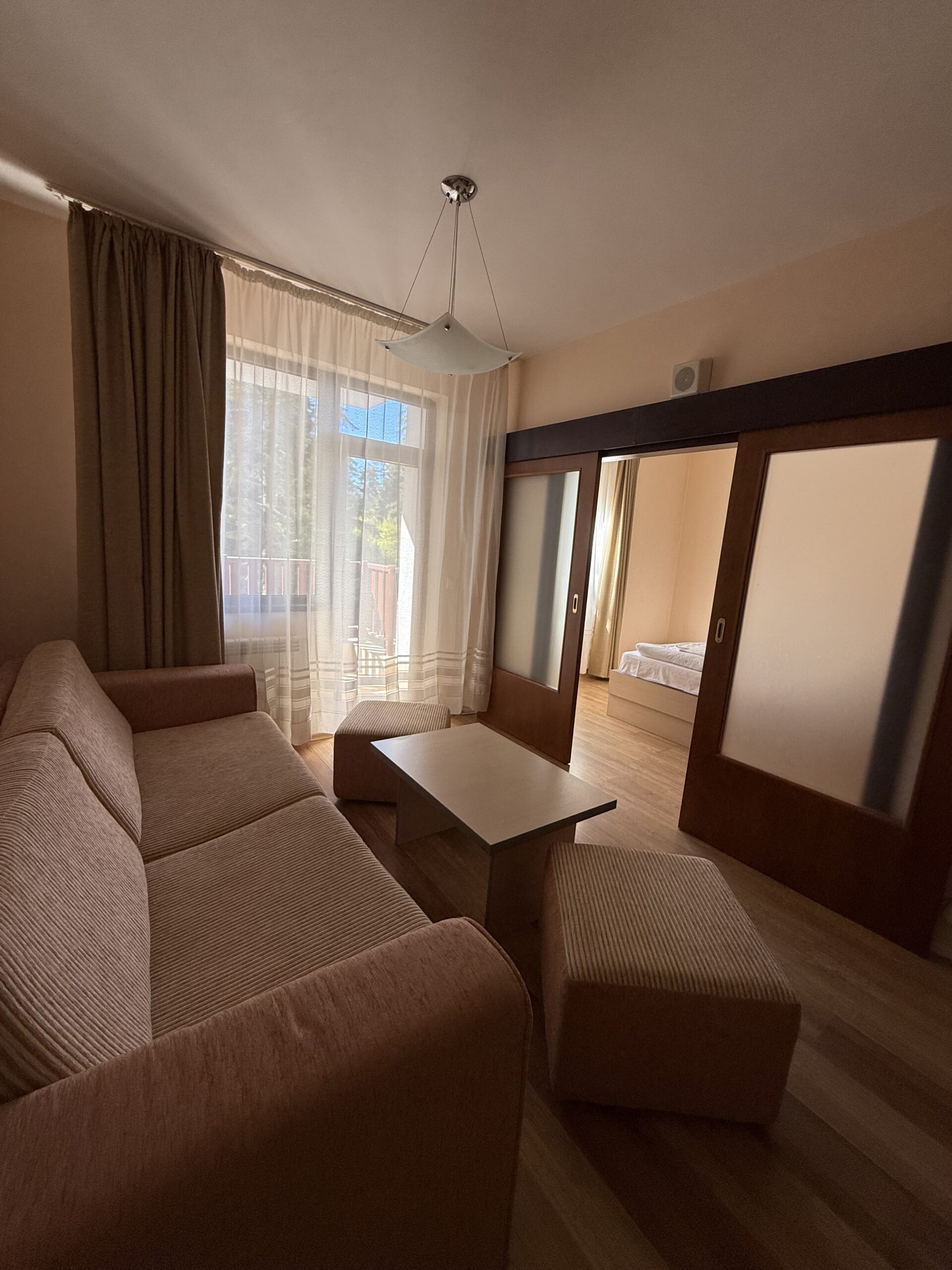 Flora Hotel & Apartment Complex is located in the central part of Borovets ski resort, just 100 meters from the central station of the cabin lift Yastrebets and the four chair lifts Martinovi baraki and Sitnyakovo Express. At 500 meters from the hotel complex is the Royal Bistritsa residence with it’s park open for visitors.The hotel complex comprises of main building and five situated among perennial pines buildings with apartments. The complex is designed to satisfy the needs of different types of tourists: ski lovers, and cultural tourism as well as recreational mountaineers.