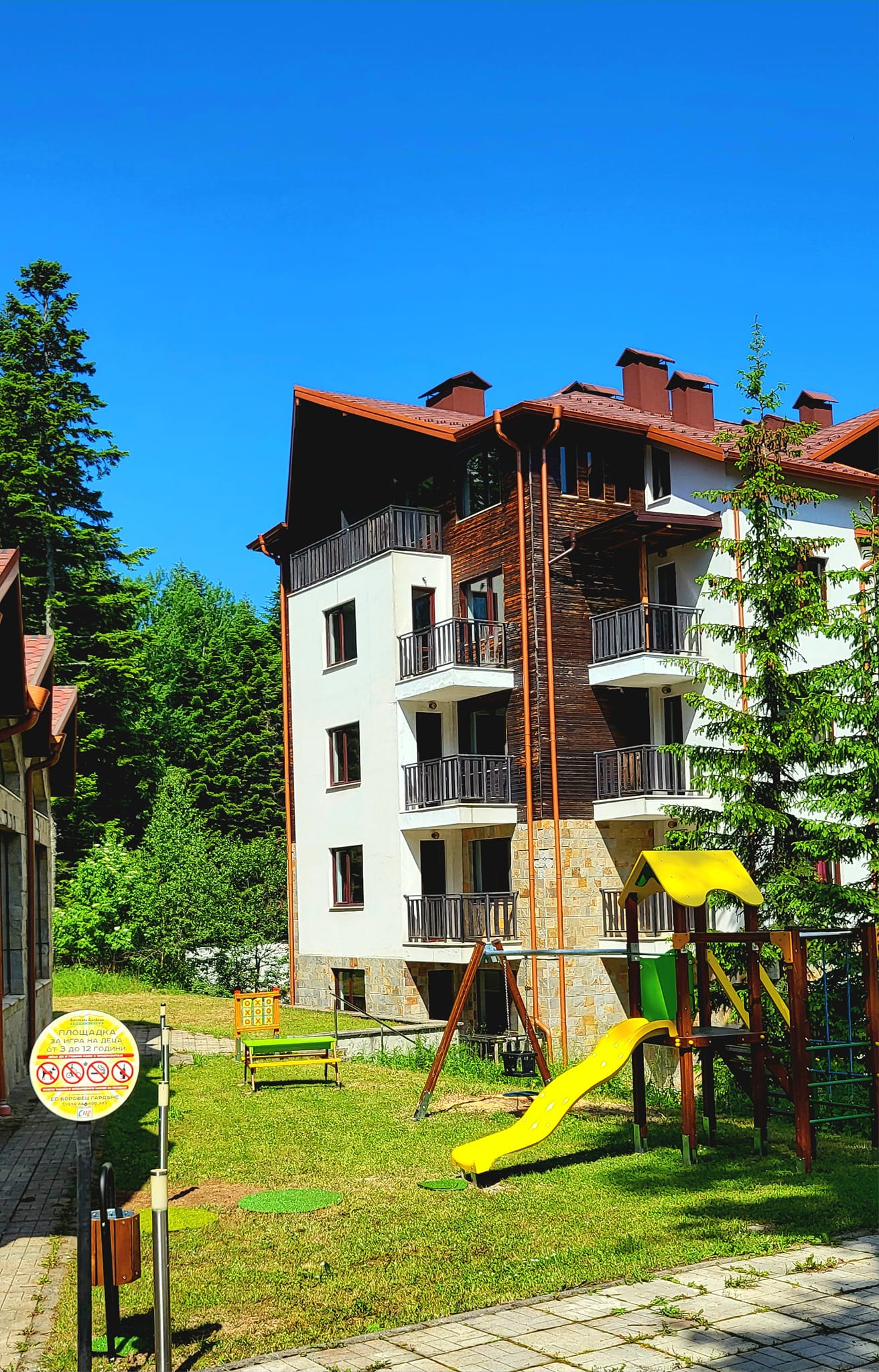 Borovets Gardens apartment complex is newly built and modern complex situated in the old center of Borovets, at the beginning of resort. Walking distance from main Gondola lift 10 minutes. The complex offers private studios, one-bedroom and two-bedroom apartments with fully equipped kitchen areas.